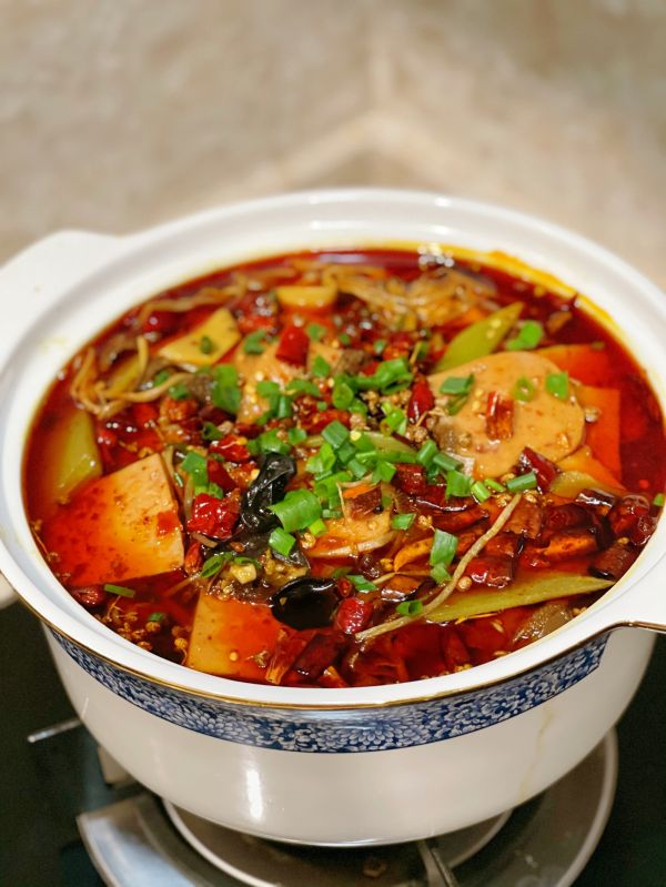 小火爆香多一点的大蒜生姜末放两勺豆瓣酱一大块火锅底料,喜欢吃麻的可以多放一些花椒,我今天放的这个是青花椒
