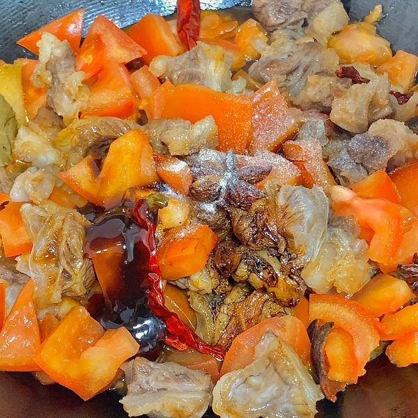 加入开水,莫过牛肉番茄,炖2小时(因为时间不允许我只炖了1小时,没有很软烂)