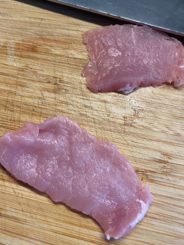 里脊肉里调入植物调料粉、盐、一起腌制一会