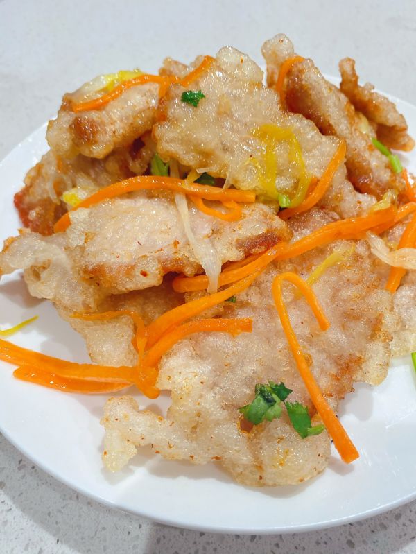 做锅包肉这道炸烹菜肴的技术就是吃汁不见汁, 让糖醋汁迅速雾化均匀的挂在炸脆的糊上
