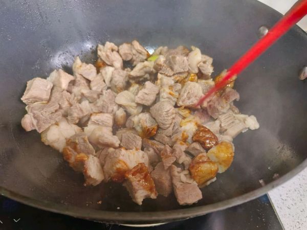 冰糖加水和少许油,熬糖色