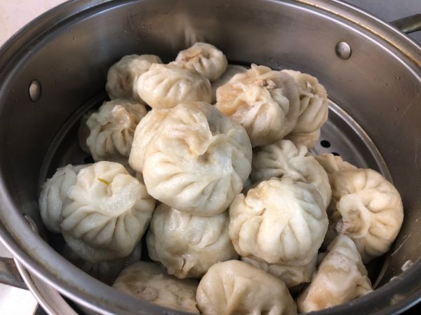 蒸熟后的包子上笼倒下笼,下笼倒上笼因笼底刷了油一点也不粘,蒸笼下面垫大一点溶器直接端餐桌享用,根据自己喜好调上各自想吃的醮料。