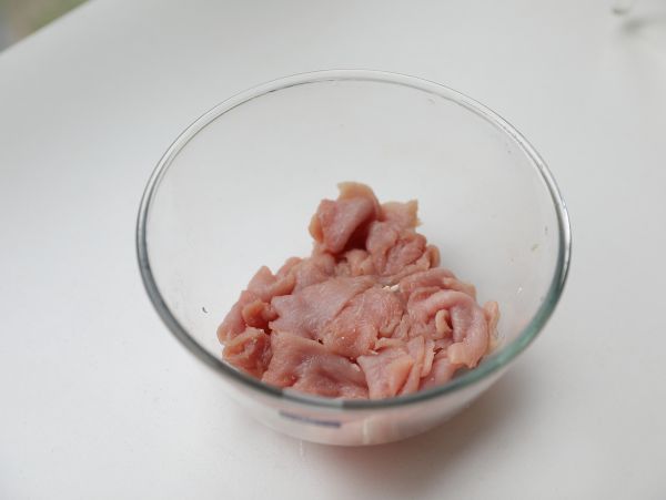 猪里脊肉切成4-5mm稍微厚一点的大片,然后用刀背轻轻的捶打锤松肉片。