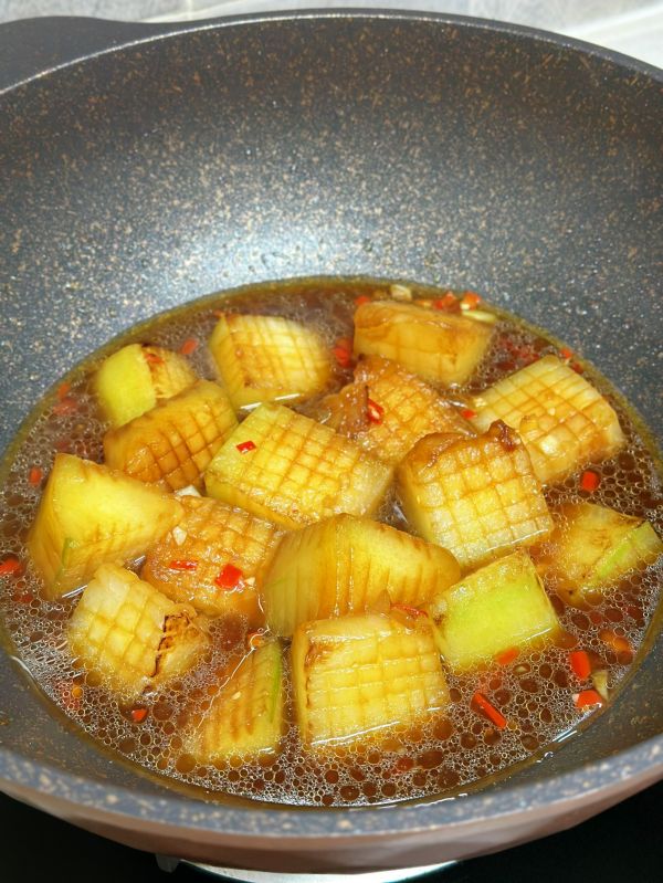 加入与冬瓜平齐的水,如果你们喜欢吃软一点的口感,那水可以适当的放多一些