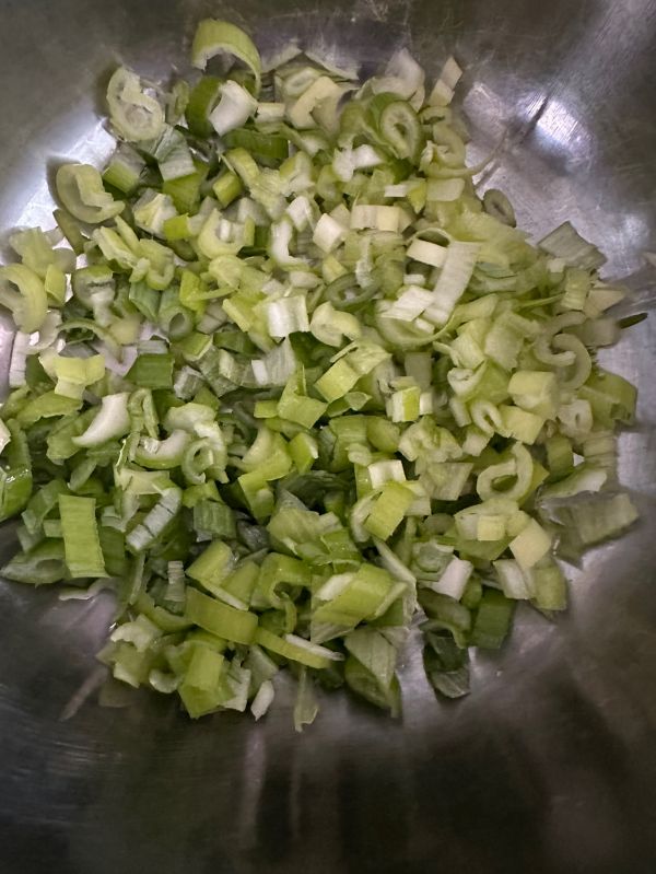 手上抹一些食用油,使劲揉搓面团,排出里面的气体,然后静置10分钟,二次醒发。醒发后,把提前切好的葱花分多次,洒在面团上,用手揉抓,使葱花和面团充分融合。