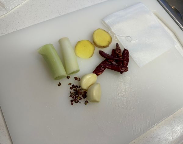 准备料包 葱姜蒜干辣椒花椒