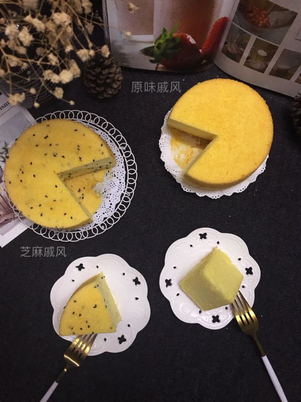 #奇妙烘焙屋#芝麻&原味戚风蛋糕(