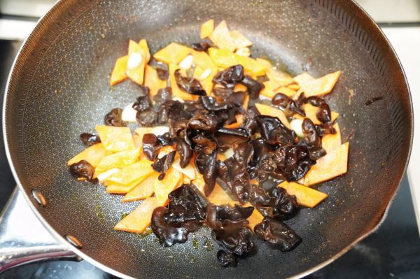 倒入半杯开水,放入生抽和蚝油一起翻炒均匀
