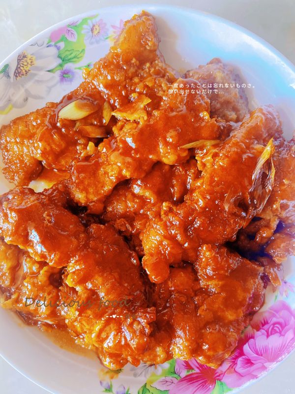 腌制好的猪排裹上一层淀粉, 锅中放多一点的油,半煎半炸的将猪排表面炸至金黄焦脆,盛出备用;