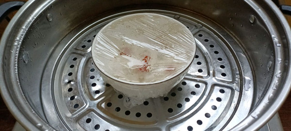 盖上保鲜膜,放入蒸锅大火蒸12分钟,