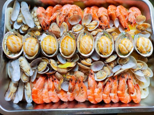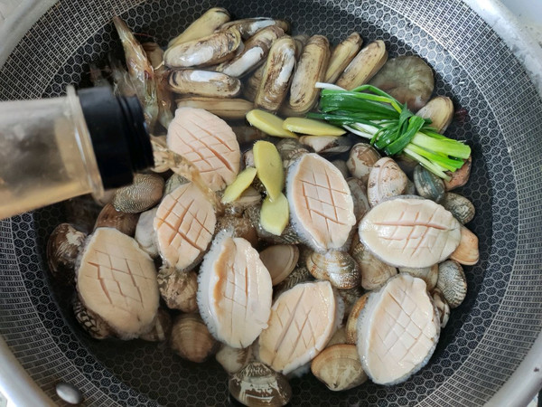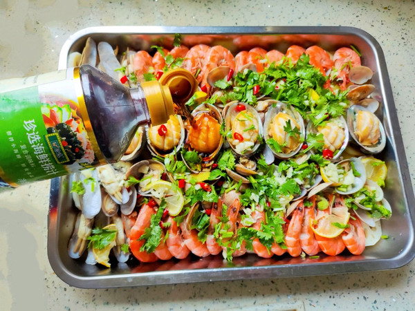 我给两位长辈准备的晚餐,冰镇黑啤、捞汁小海鲜……
