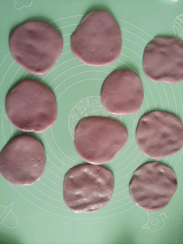 把全部饼皮材料倒入盆内,搅拌均匀过一遍筛。做紫薯粉的这份我忘记拍照了,用之前的代替哈。我一般是用大容器搅拌好,然后分到小碗里再加入不同的紫薯粉,红曲粉,胡萝卜粉,抹茶粉等调出不同的颜色。