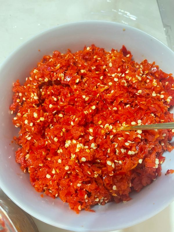 辣椒,蒜,姜搅碎