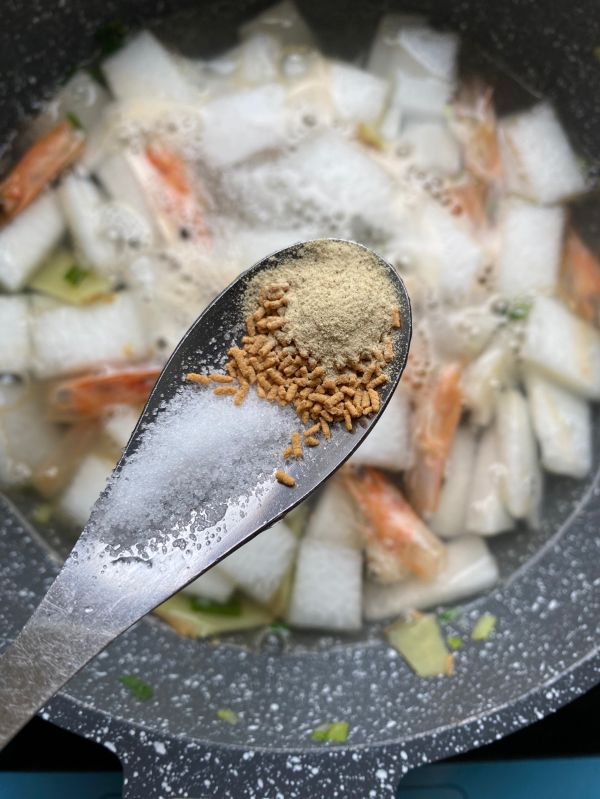 煮至冬瓜熟透,挑出虾头扔掉不要