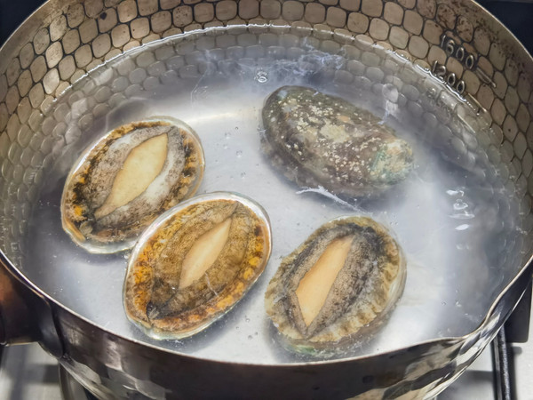 烧一锅水,水开关火,放入鲜活鲍鱼盖盖焖3分钟左右。