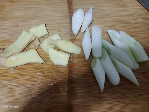 加入料酒,在鸡腿表面放入葱姜,高压压制35分钟