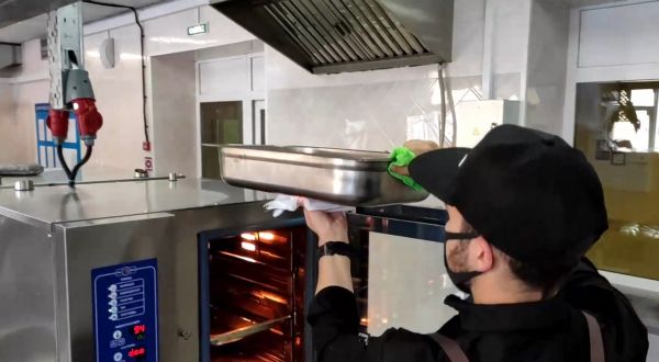 蒸熟后从蒸箱里取出,开始去蟹腿肉。