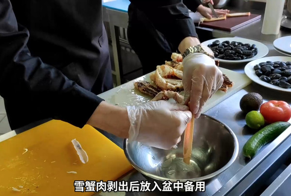 蟹腿肉剥出放在盆中备用。