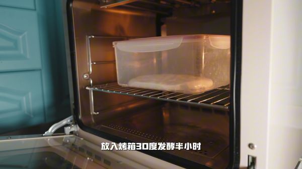 ✅放入烤箱30度发酵90分钟,每30分钟折叠一次面团,️就是一共折叠两次。具体手法视频喔(折叠翻面是为了发酵折叠进空气,气孔更漂亮)