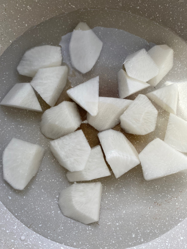 白萝卜切块焯水去除腥辣味