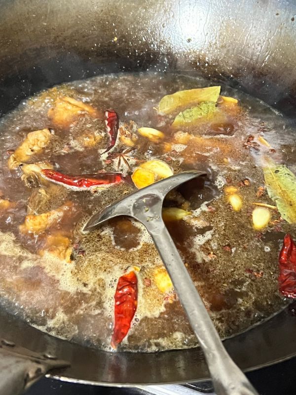 锅里倒油放入冰糖熬制出泡(注意中小火 要一直搅拌不要会糊)
