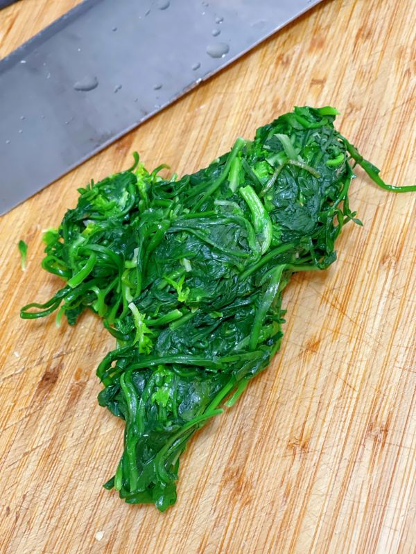 荠菜彻底的拧干水分之后剁成小碎