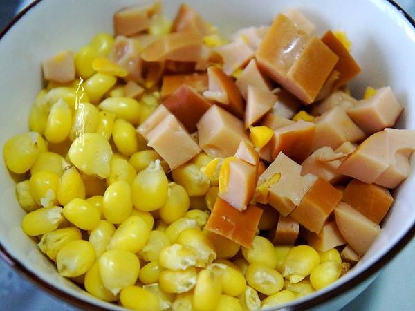 玉米肠洗净切丁,熟玉米粒洗净控净水分,嫩玉米是高钙食物,可与乳制品媲美,常吃老人孩子补钙,还能刺激大脑细胞,增强记忆力,达到延缓衰老的目的。