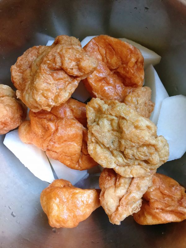 放入白萝卜和面筋