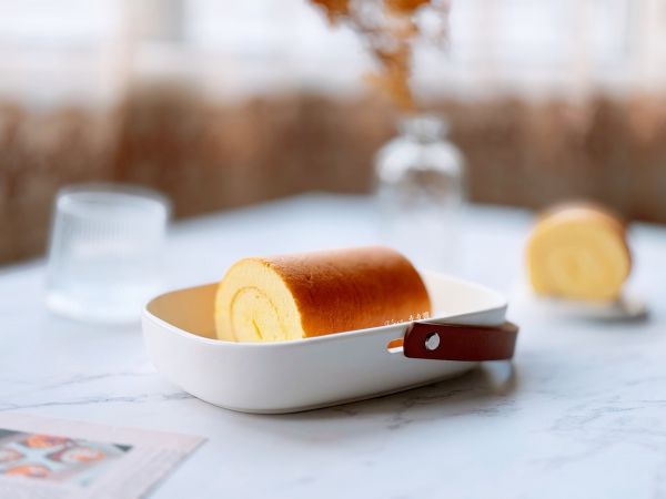 烤好后取出晾涼,蛋糕卷胚凉后翻面,借助擀面杖卷起,入冰箱冷藏半小时定型后切除两侧不规则部分即可
