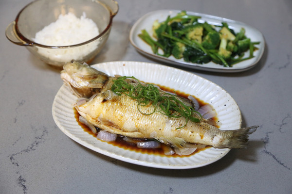 淋上蒸鱼豉油和热油,摆上葱花即可