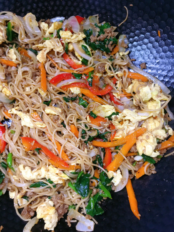 放少许油烧热,放入胡萝卜丝炒一分钟