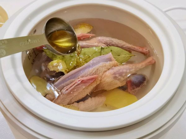 加入白玉木耳继续炖煮。继续炖煮约1小时,至鸽子肉质软烂。
