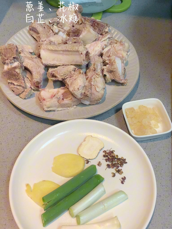 放葱姜,和2倍的水没过排骨,加入花椒和白芷。