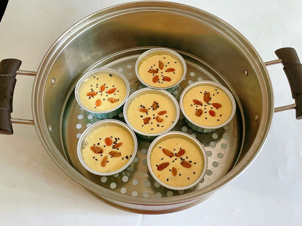 小碗中刷上食用油防粘,把面糊倒入小碗中,撒上黑芝麻,放上葡萄干放入蒸锅二次醒发15分钟,水开计时蒸20分钟,关火焖5分钟出锅。