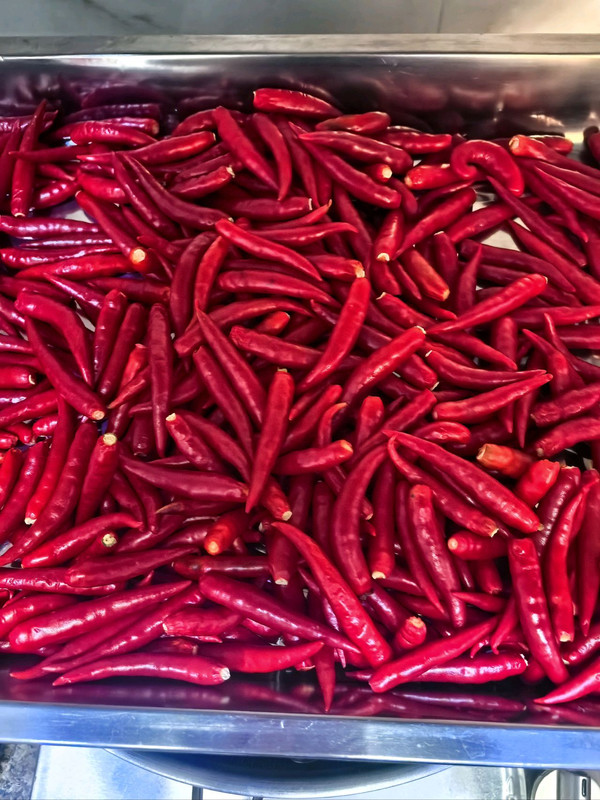 小米辣洗净,洗之前不要去地蒂,洗完之后去蒂晾干,控净水分。