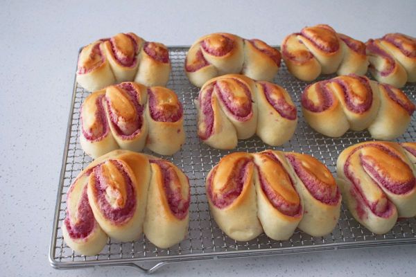 柔软拉丝的面包搭配上紫薯奶酥,真的好吃又好看。