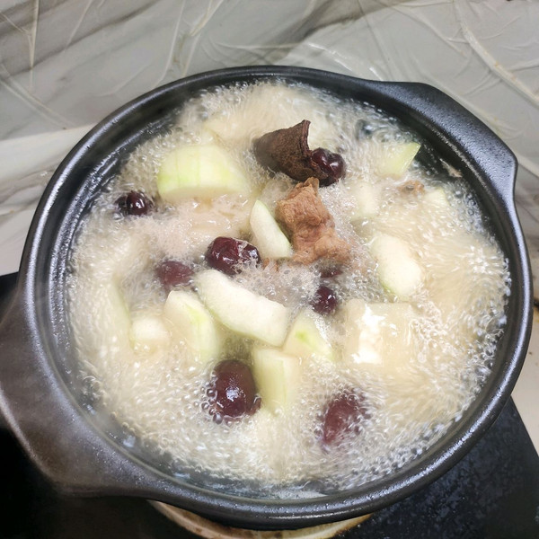 再放入生姜,八角,桂皮,香叶,葱段和红枣!