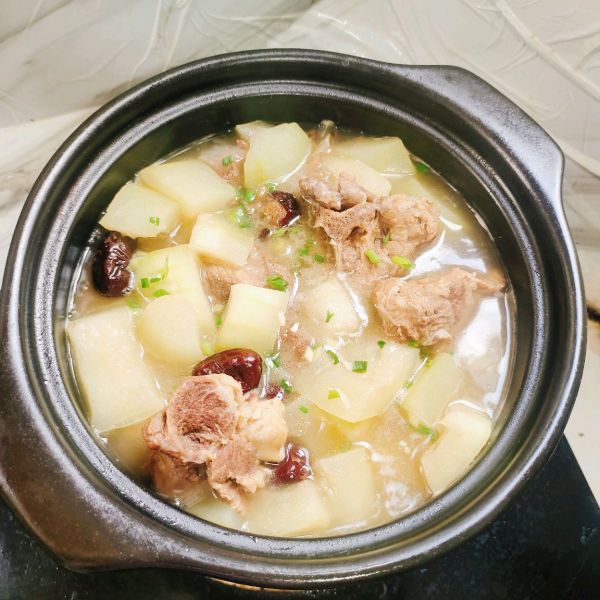 炖猪骨的时候。我们来把冬瓜去皮,去瓤,清洗干净,切成小块备用!