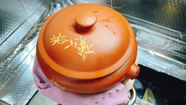 蒸汽变成汤汁落在汤锅里,把莲藕和排骨蒸熟
