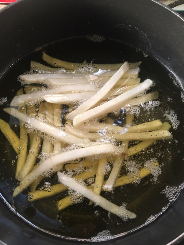 炸至两面金黄、捞起,加油纸油吸收一下多余的油份