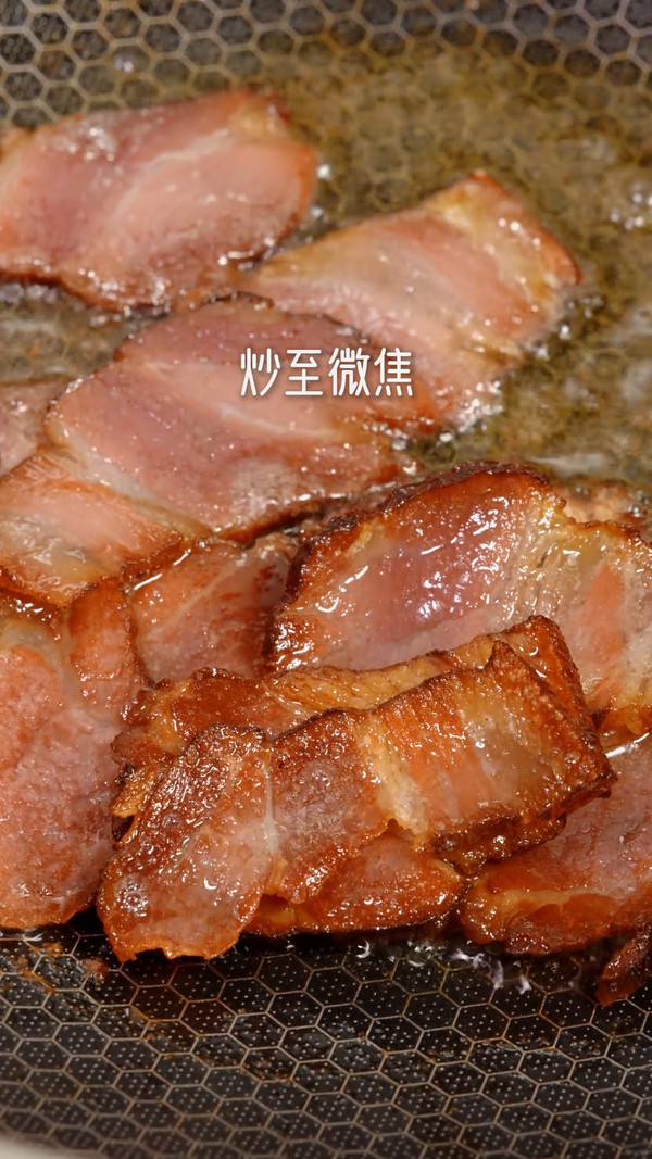 切腊肉片,青椒片,姜片,葱段、小米辣备用