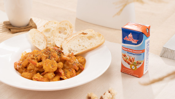安佳烹饪稀奶油倒入锅中,煮至酱汁稍微收浓