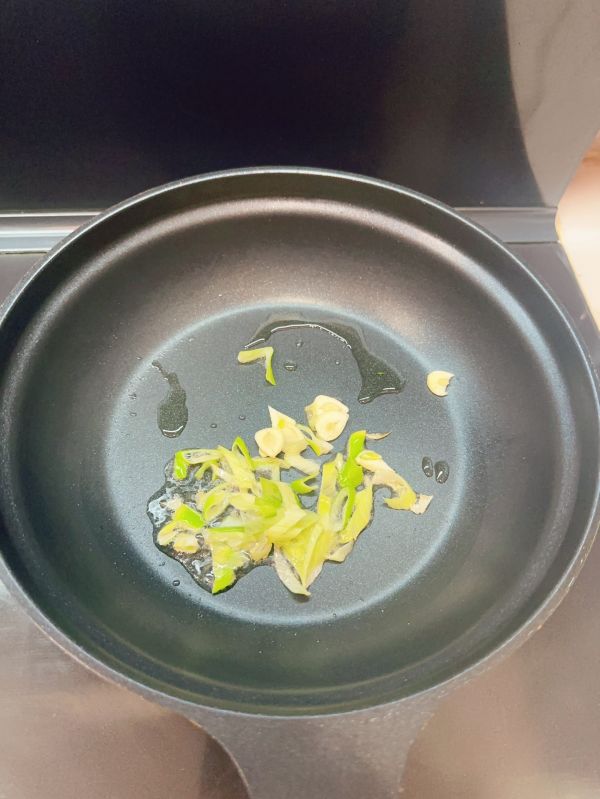 热锅冷油,先倒入葱花蒜末