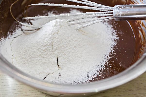 做蛋糕坯,葵花籽油+可可粉+盐,搅拌成乳化状;