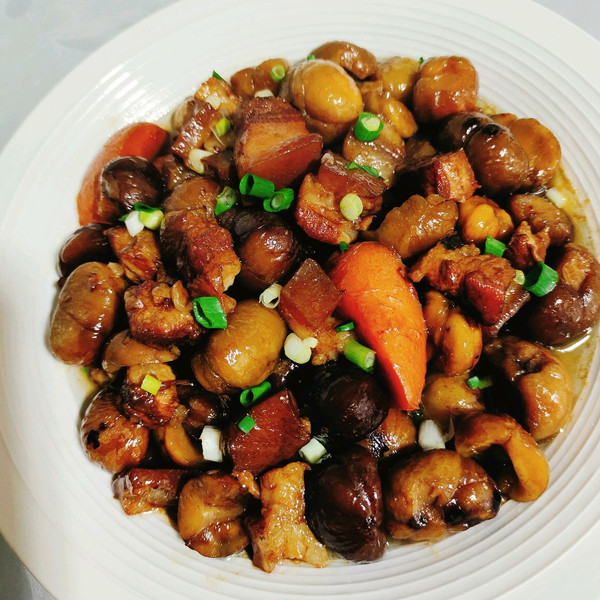浇上一大勺板栗红烧肉!一份儿板栗红烧肉盖浇饭就好了!米饭吸收了汤汁儿,特别好吃!
