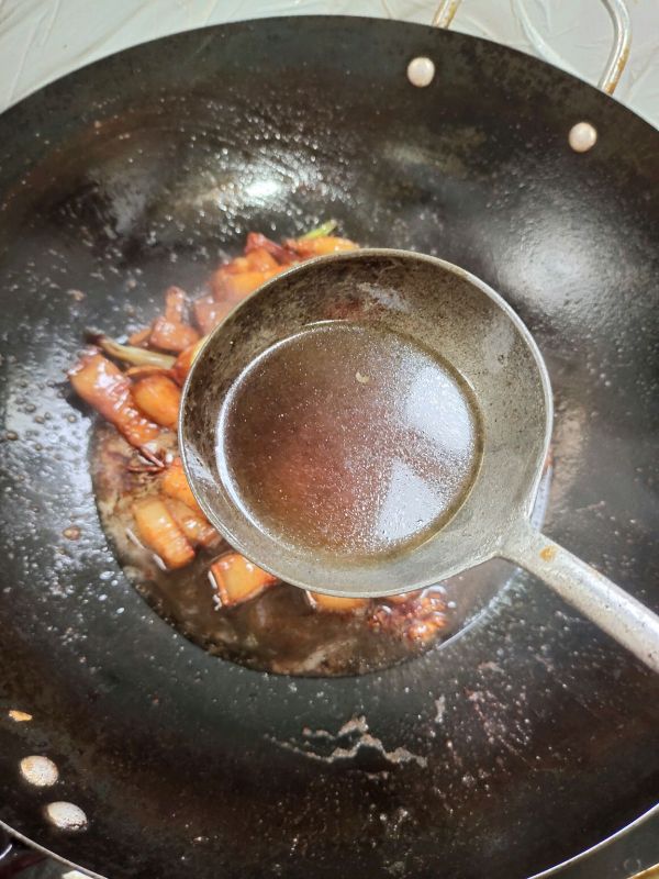 倒入适量的黄酒去腥!(没有黄酒放料酒,啤酒都可以!)