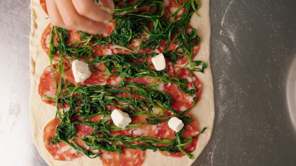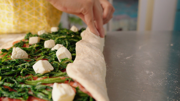 ✅长方形面团比较长的一边用手指或手掌打薄