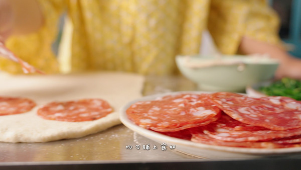 ✅准备工作2:肉类可选择萨拉米或午餐肉或香肠,提前用厨房纸吸干油脂
