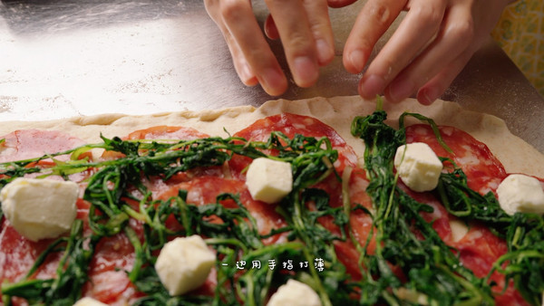 ✅发酵好的面团表面喷水,擦干酪丝