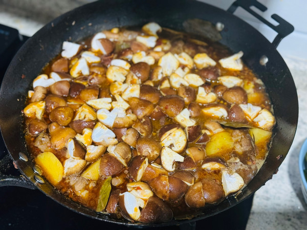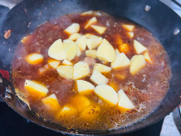加热水没过排骨,倒入土豆块(加温水排骨肉质才不会柴)